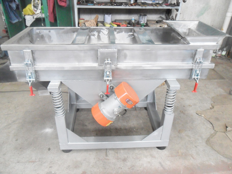 本机上部采用快拆式手柄,把整机连成一个整体,上盖全密封、有效防止物料在过筛时由于振动而产生粉尘飞扬。筛体下部安装振动电机,有效保证了物料的结构紧凑,下部采用弹簧减振,使整机在平稳状态下工作。下面底座采用可调式,可调节正在过筛时的筛面倾斜角度,根据物料特性以取得佳过筛效果。
