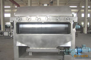 3、启动电机,主滚筒动运转平稳,温度升高后加入物料后调整电机转速及物料在滚筒上薄膜均匀程度来控制物料终含水量。